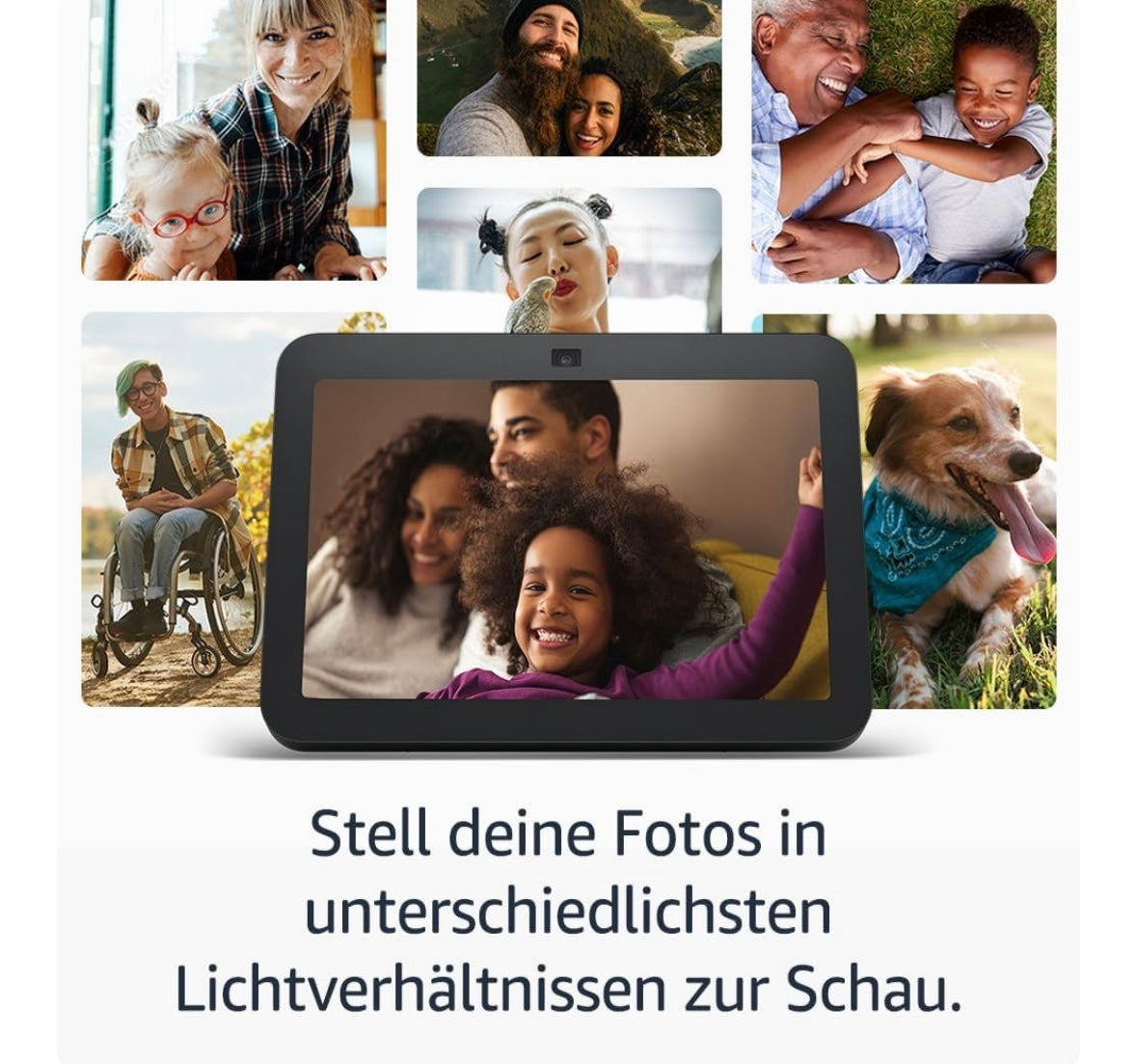 Ausgestattet mit Wi-Fi-Konnektivität, Touch-Display und Sprachsteuerung über Alexa, ermöglicht der Echo Show 8 eine einfache Bedienung und vielseitige Nutzung – vom Musik-Streaming über Videoanrufe bis hin zur Steuerung Ihres Smart Home.